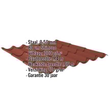 Dakpanplaat 2/1060 | Anti-Drup 1000 g/m² | Staal 0,50 mm | 80 µm Shimoco | 3009 - Oxyderood