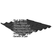 Dakpanplaat 2/1060 | Anti-Drup 1000 g/m² | Staal 0,50 mm | 80 µm Shimoco | 9005 - Gitzwart