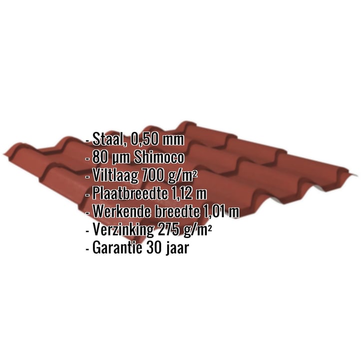 Dakpanplaat EUROPA | Anti-Drup 700 g/m² | Staal 0,50 mm | 80 µm Shimoco | 3009 - Oxyderood
