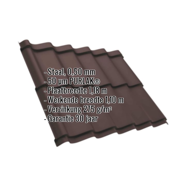 Gemaakt van Staal met een materiaaldikte van 0,50 mm, biedt het een robuuste dakoplossing. De plaatbreedte van 1,18 m en de effectieve werkende breedte van 1,10 m maken een snelle en efficiënte montage mogelijk. Dankzij de 50 µm PURLAK® coating in Chocoladebruin (RAL 8017) blijft het materiaal permanent beschermd tegen corrosie, terwijl de profielhoogte van 25 mm extra stabiliteit biedt. De geïntegreerde anti-capillaire groef voorkomt het binnendringen van vocht bij de overlappingen en zorgt voor een optimale waterafvoer.