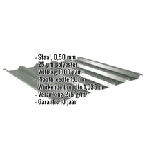 Gemaakt van Staal met een materiaaldikte van 0,50 mm, biedt het een robuuste dakoplossing. De plaatbreedte van 1,07 m en de effectieve werkende breedte van 1,035 m maken een snelle en efficiënte montage mogelijk. Dankzij de 25 µm polyester coating in Chroomoxydegroen (RAL 6020) blijft het materiaal permanent beschermd tegen corrosie, terwijl de profielhoogte van 35 mm extra stabiliteit biedt. De geïntegreerde anti-capillaire groef voorkomt het binnendringen van vocht bij de overlappingen en zorgt voor een optimale waterafvoer.