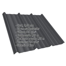 Gemaakt van Staal met een materiaaldikte van 0,50 mm, biedt het een robuuste dakoplossing. De plaatbreedte van 1,06 m en de effectieve werkende breedte van 1,00 m maken een snelle en efficiënte montage mogelijk. Dankzij de 35 µm mattpolyester coating in Zwart (≈ RAL 9005) blijft het materiaal permanent beschermd tegen corrosie, terwijl de profielhoogte van 45 mm extra stabiliteit biedt. De geïntegreerde anti-capillaire groef voorkomt het binnendringen van vocht bij de overlappingen en zorgt voor een optimale waterafvoer.