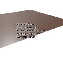 Gemaakt van Staal met een materiaaldikte van 0,50 mm, biedt deze plaat een optimale balans tussen stabiliteit en vervormbaarheid. De plaatbreedte van 1,25 m maakt efficiënt snijden mogelijk, terwijl de 25 µm polyester coating in Antracietgrijs (RAL 7016) zorgt voor duurzame bescherming tegen weersinvloeden en corrosie.
