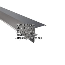 Gemaakt van Staal met een materiaaldikte van 0,63 mm, biedt dit zetwerk een hoge stabiliteit. De lengte van max. 3,50 m kunt u deze gemakkelijk aan uw dak aanpassen. Dankzij de 25 µm polyester coating in Antracietgrijs (RAL 7016) blijft het materiaal permanent beschermd tegen corrosie.